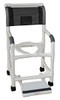 Consider adding one or more shower chair options for safety-conveniences and function: sliding footrest, commode pail, safety belt, dual drop arms, and deluxe elongated soft seat.