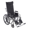 The Chariot-RC Reclining Wheelchair provides full back and headrest support as patient reclines from 90 to 180 degrees. The headrest and padded armrests are removable. Black, padded nylon upholstery resists mildew and bacteria. The frame has a chip-resistant silver vein finish. Mag-style wheels are lightweight and set back on frame to prevent user from tipping over when in the reclined position.